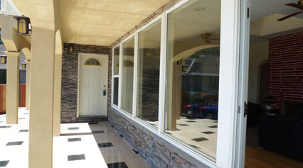 Roman arches with recessed lighting inside and outside the house, skylight windows in every room